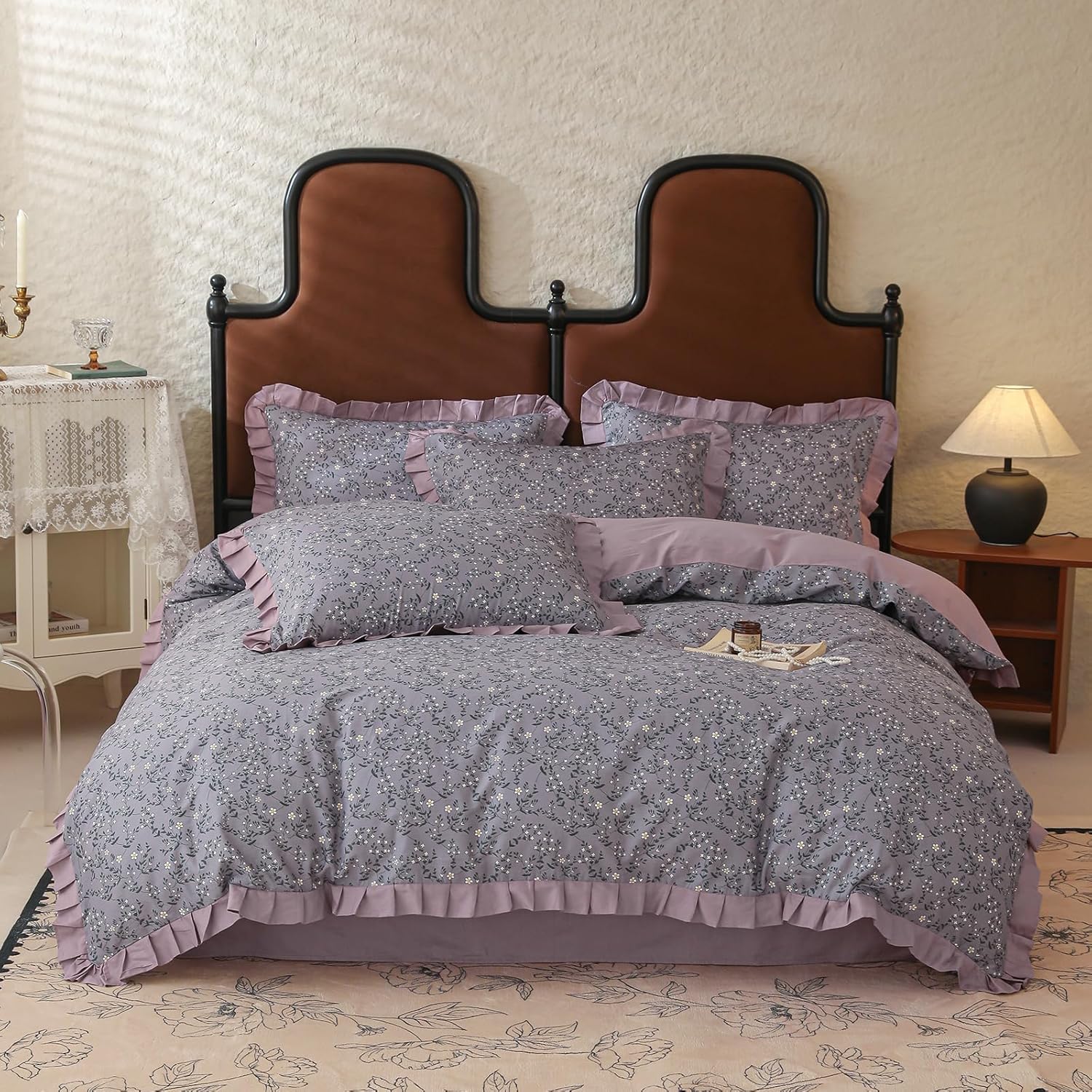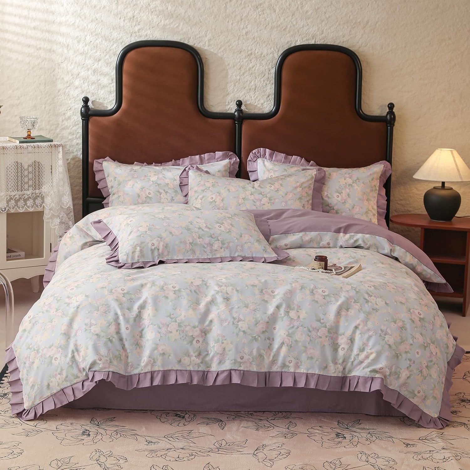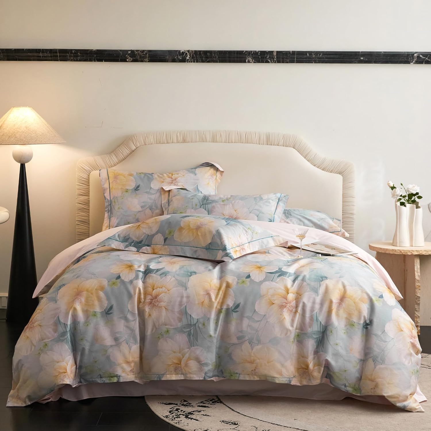 MOTNTD Floral Queen Size Duvet Cover Chic Lyocell Cotton Blend Queen Comforter Cover Luxury Boho Double-Layer Yarn Soft Duvet Cover Set with Zipper Summer Cooling Bedding Set Cute Duvet Protector